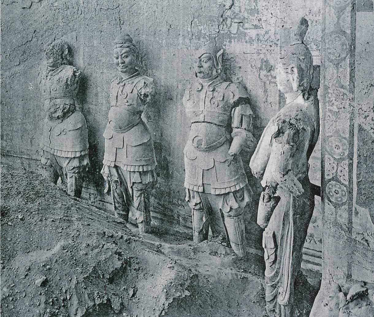 图4 莫高窟唐代第459窟残存彩塑一铺(采自《伯希和敦煌石窟图录》,该彩塑现已不存)