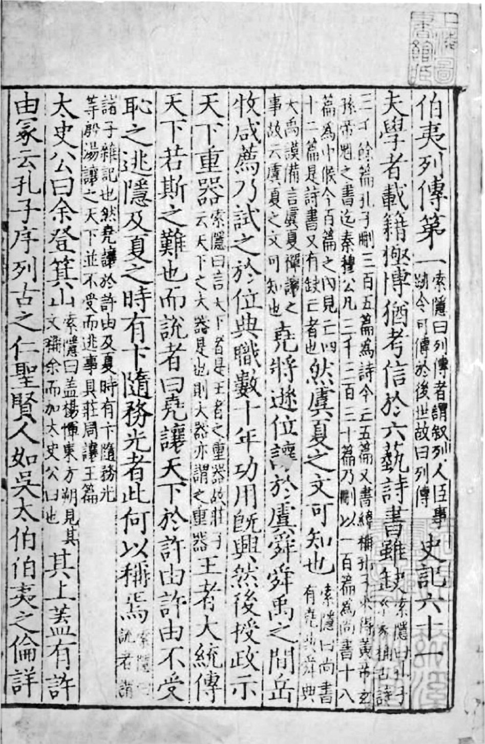 从这样的视角看,清代学者何焯在《义门读书记》里说,《伯夷列传》是《史记》七十列传的一个凡例;章学诚在《文史通义》里说,《伯夷列传》是“七十篇之序例”,都可谓意味深长。