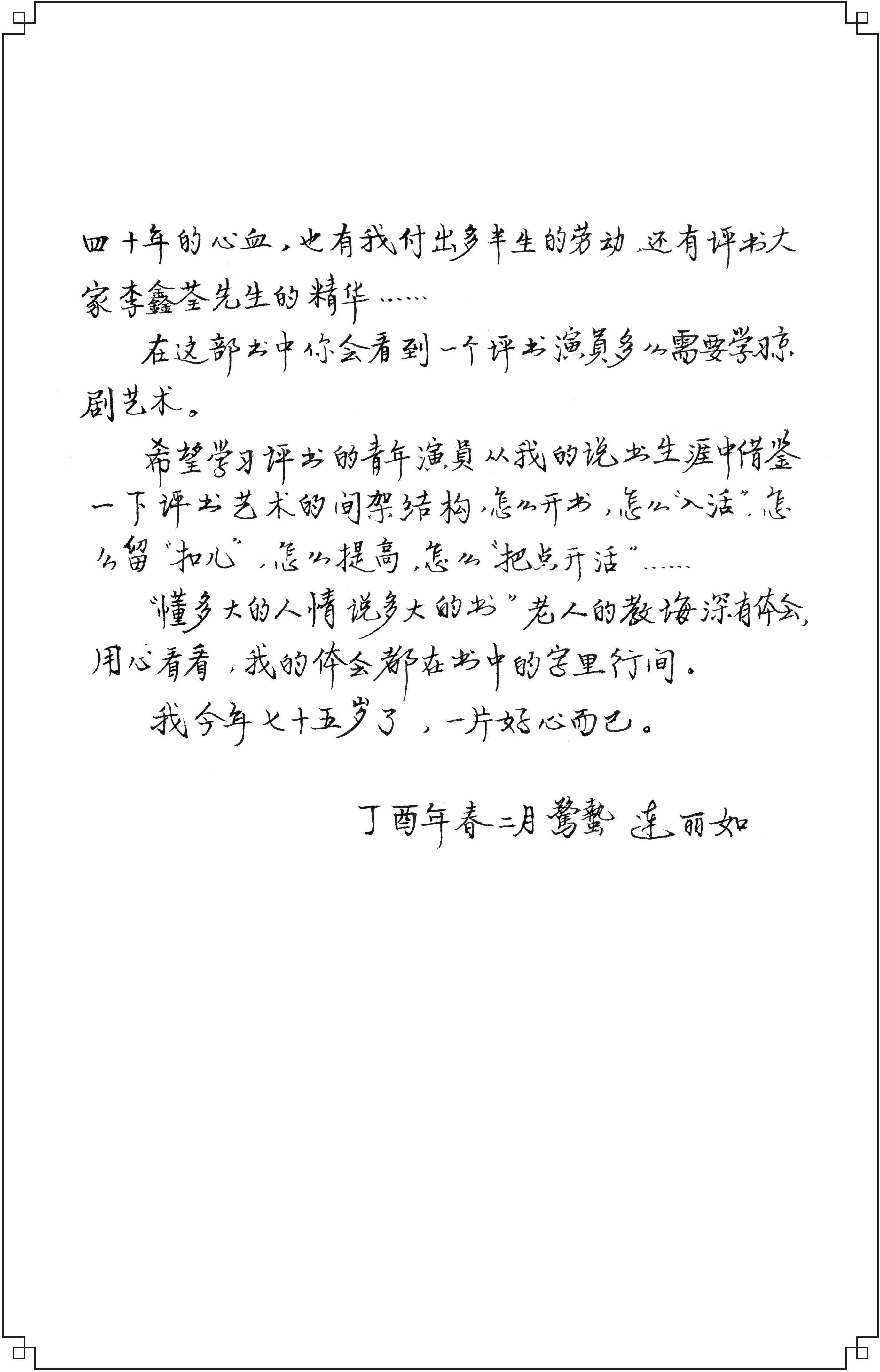 1942年生。国家级非物质文化遗产项目北京评书代表性传承人。1960年随父亲连阔如学习评书艺术,一年后在北京天桥刘记茶馆说演长篇评书《三国》,成为北京第一位女评书演员,是连派评书唯一传承人。近年来,与丈夫贾建国致力于北京评书的挖掘整理与传承发展。2007年开办宣南书馆,每周六下午演出,迄今已连续演出十多年,共500余场,与弟子们将经过挖掘整理的多部评书搬上舞台,如《东周列国》《隋唐》《水浒》《西汉》等。如今,连丽如夫妇为北京评书事业的呕心沥血已然见到成果,义子王玥波已成为深受观众喜爱的青年评书演员。 tTcr+clNxNBheDjdsj2aPohro2tN1nJYmfrPVlifVaiDADHaf6AMXDHmwksEB5Ap