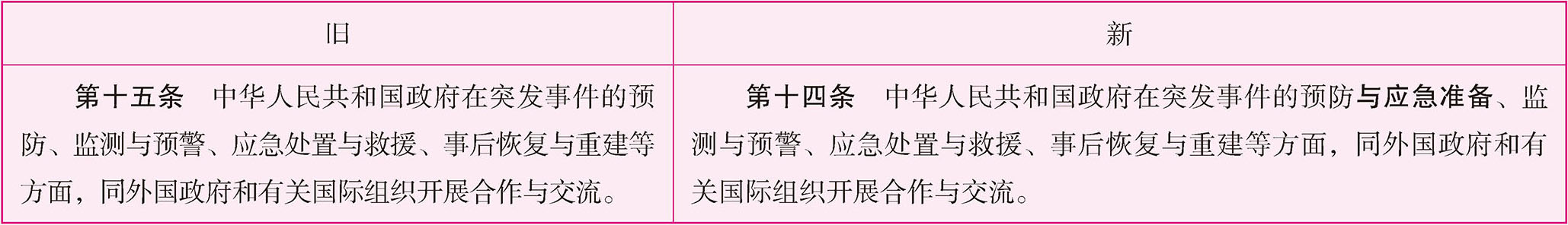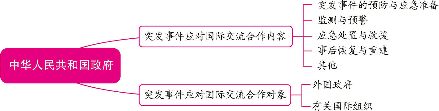 本条的设置主要考虑:(1)应对突发事件是当今各国政府面临的共同课题,各国都在着力探寻突发事件的应对规律,立足于本国实际完善突发事件应对的制度、体制、机制。加强合作与交流有利于取长补短,经验共享,更好地应对人类面临的挑战。(2)当今许多突发事件的范围和危害已超越国界,如公共卫生事件、环境事故等,应对好这类突发事件,不仅要信息共享,而且许多应对措施也要协同联动。(3)一国应对突发事件,往往需要他国和国际组织的人力、物力、财力和技术上的支持,以有效、及时地控制事态发展、减少损失。因此本条规定了我国政府在应对突发事件的各个环节都同外国政府和有关国际组织开展合作与交流,而且这种合作与交流是建立在平等互利基础上的坦诚与互信,做到权利与义务统一、支持与受助互通。