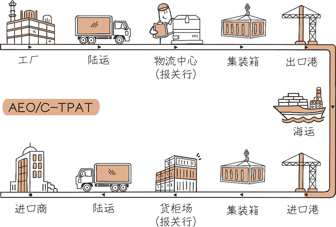 由于国土可能面临恐怖威胁或炸弹袭击等诸多紧急情况,美国海关及边境保卫局(U.S. Customs and Border Protection)加强边境武装巡查和通关查验力度。后9·11时代,美国海关及边境保卫局采用“前推后移(向前端供应商延伸认证,对后端收货人重点监控)”的方式,于商业上兴起一系列旨在反恐的运输安全计划,其中一项即与进口商、物流商及制造厂商合作的C-TPAT(海关—商贸反恐联盟,Customs-Trade Partnership Against Terrorism)。该计划的核心内容是相关企业只有通过C-TPAT认证,其货物才能够安全抵达美国国境并快速通关,否则货物可能被拒绝装船,以保障国土安全。