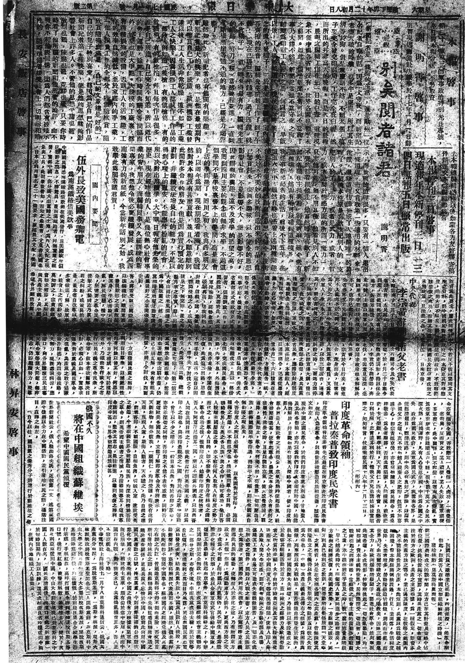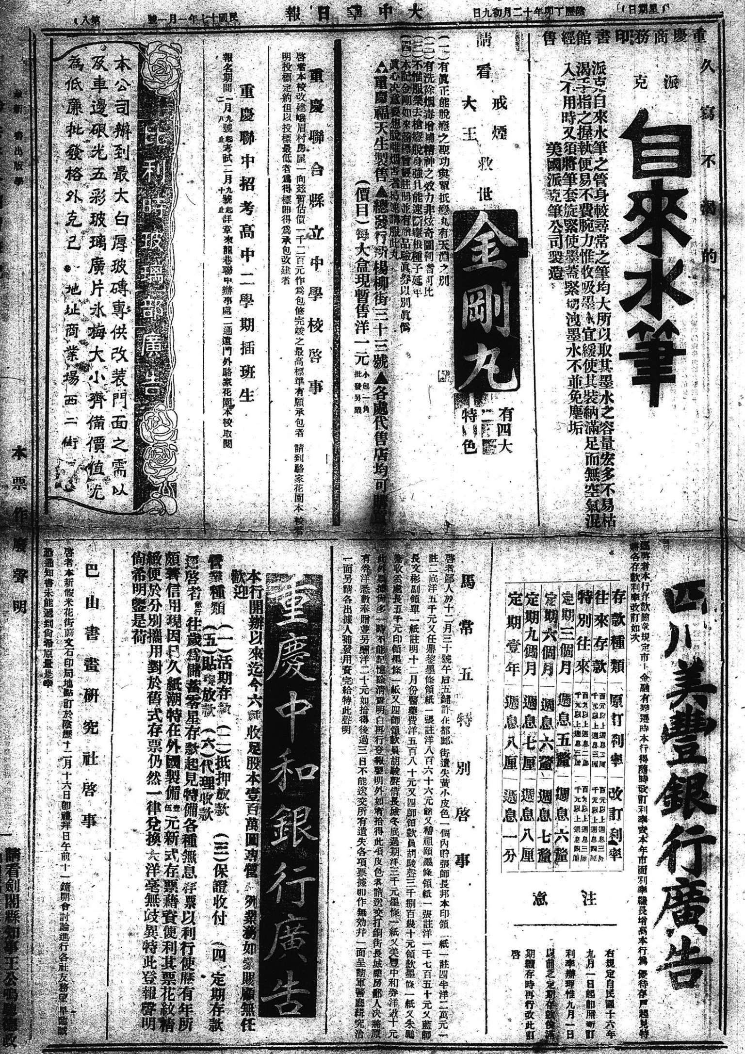 1922年创刊,社址设在重庆商业场永龄巷9号。日出对开8版,发行1000余份。出版一年多后停刊,1925年陈学池曾重新申请立案出版,得到川军师长王陵基的资助,1930年冬终刊。