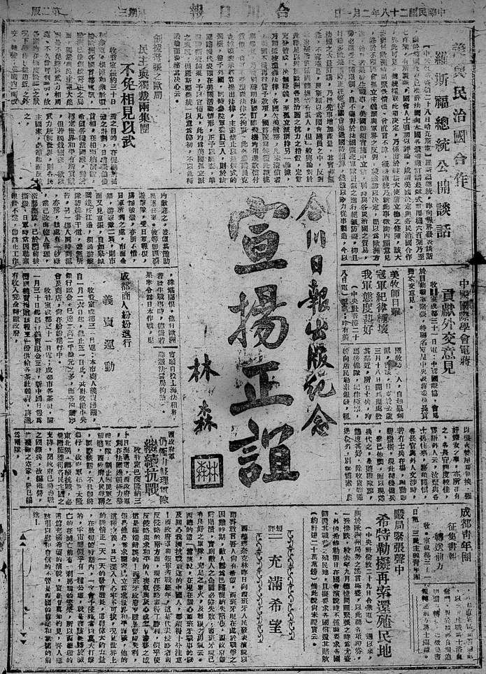主编副刊《火网》,孙开围编第二、三版。自1939年9月起,该报与《大声日报》出联合版,报纸的经理部设在合川日报社,编辑部设在大声日报社,联合版1941年初停刊。《合川日报》继续发行,直至1949年12月终刊。