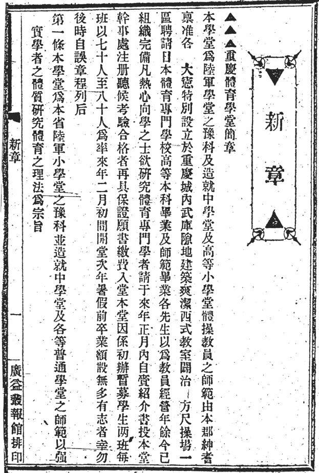 图18 新章:重庆体育学堂简章