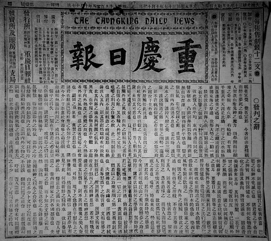 1904年10月17日创刊,是重庆新闻传播史上最早的日报。