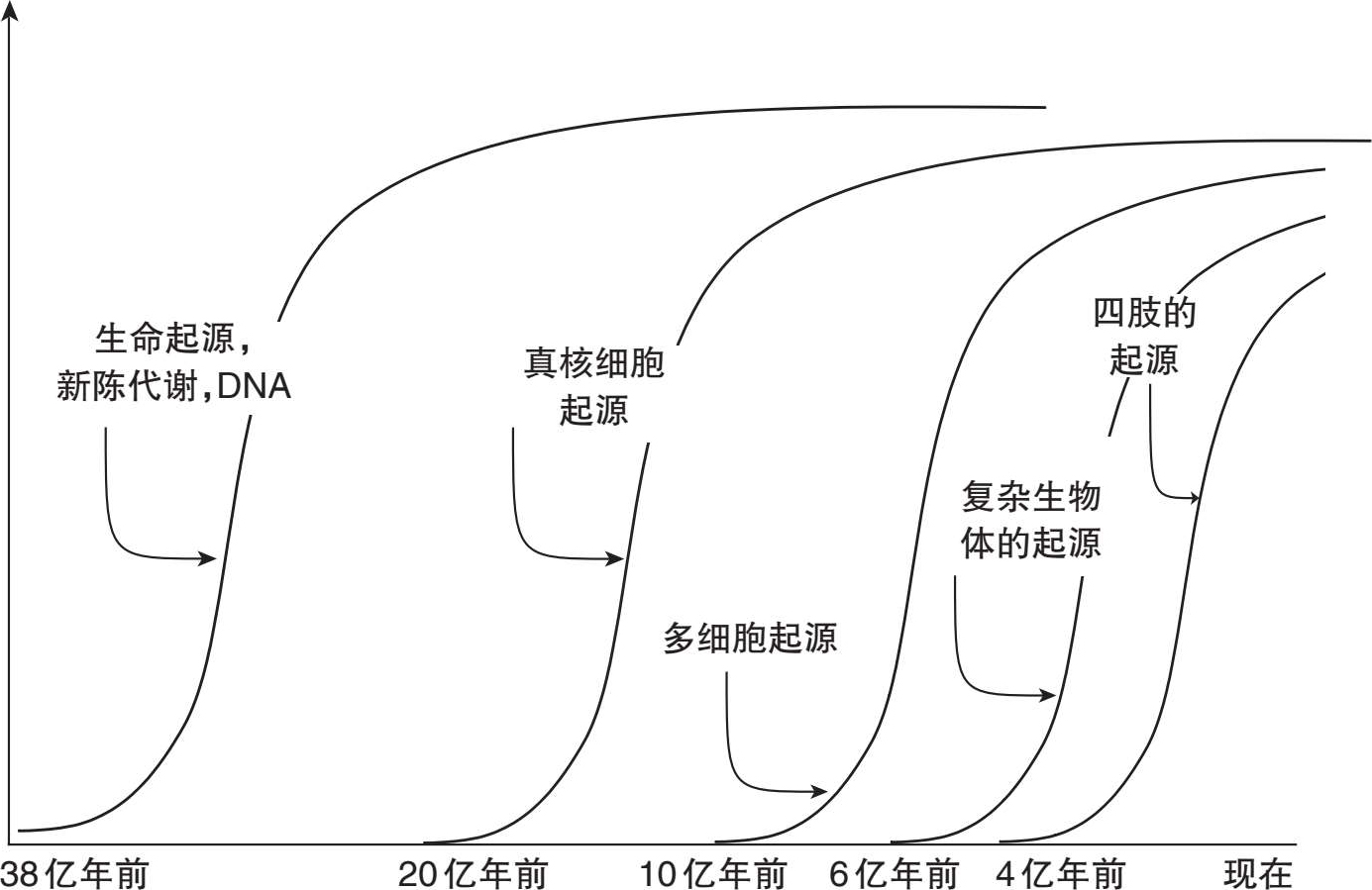 图2.7:用细胞过程的出现顺序定义的世界进化历史。图片来源:由Marc Kirschner提供