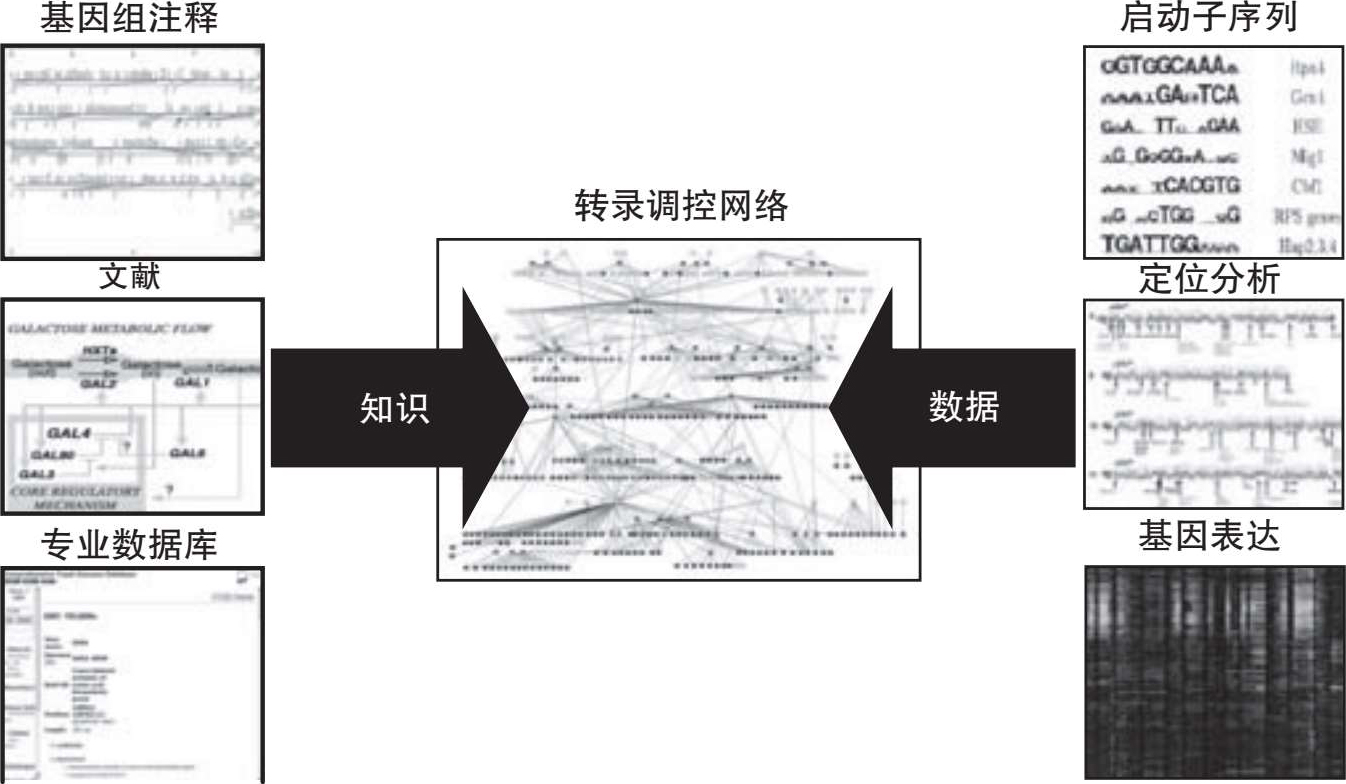 多种不同类型与转录调控网络相关的数据是可获取的,这些数据可为调控网络重构过程提供相关信息,因此,我们需要对数据进行整合利用。发展不同类型数据整合的方法是调控网络重构和系统生物学的主要挑战之一。