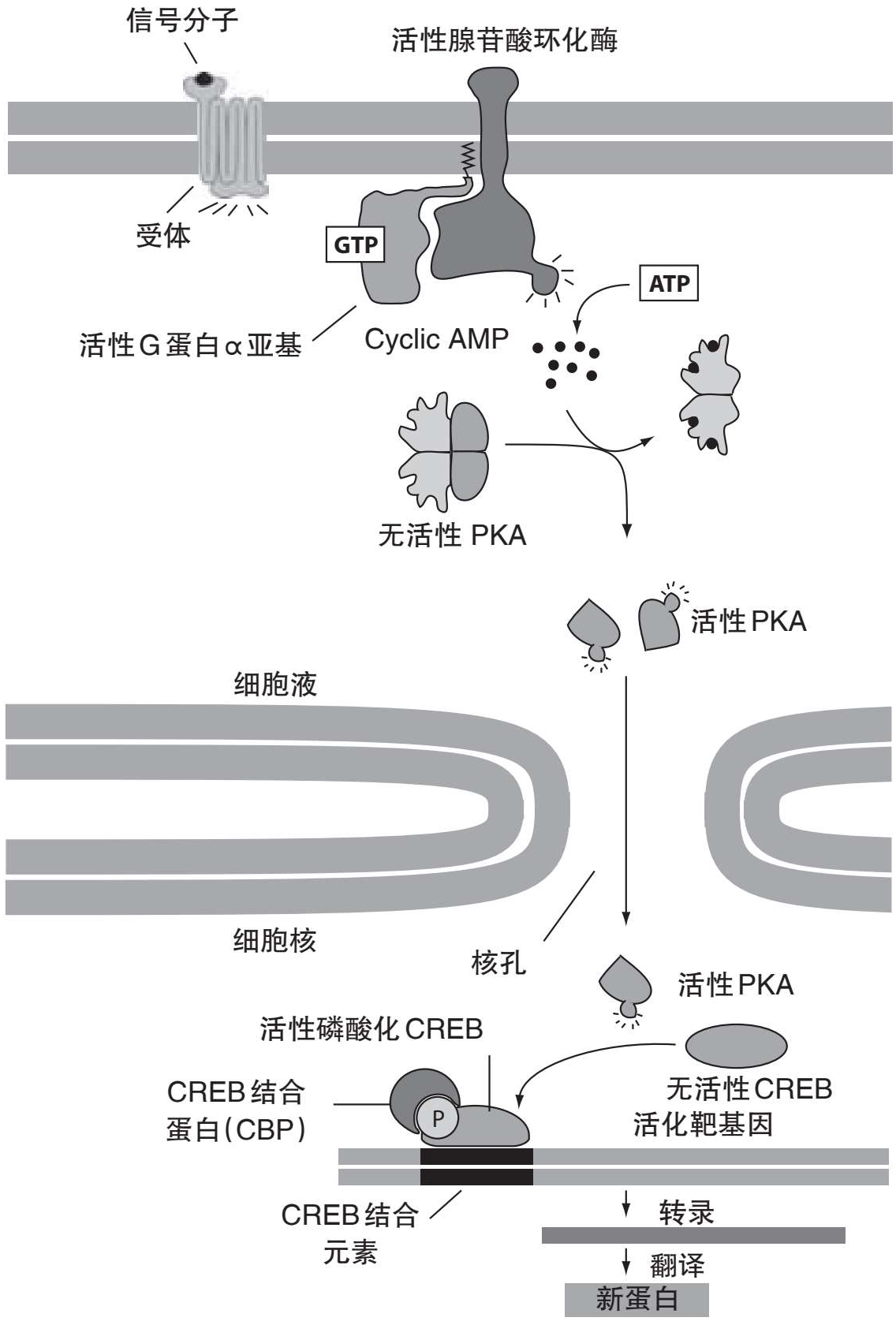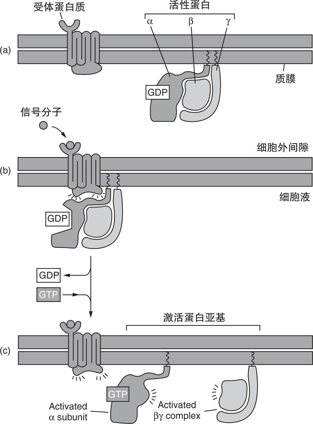 图5.3:G-蛋白信号传导。经Garland Science/Taylor & Francis Books公司许可,改编自参考文献[1]