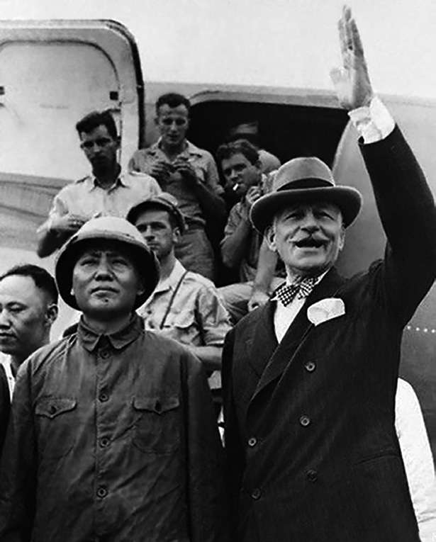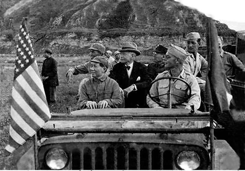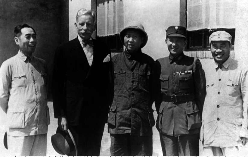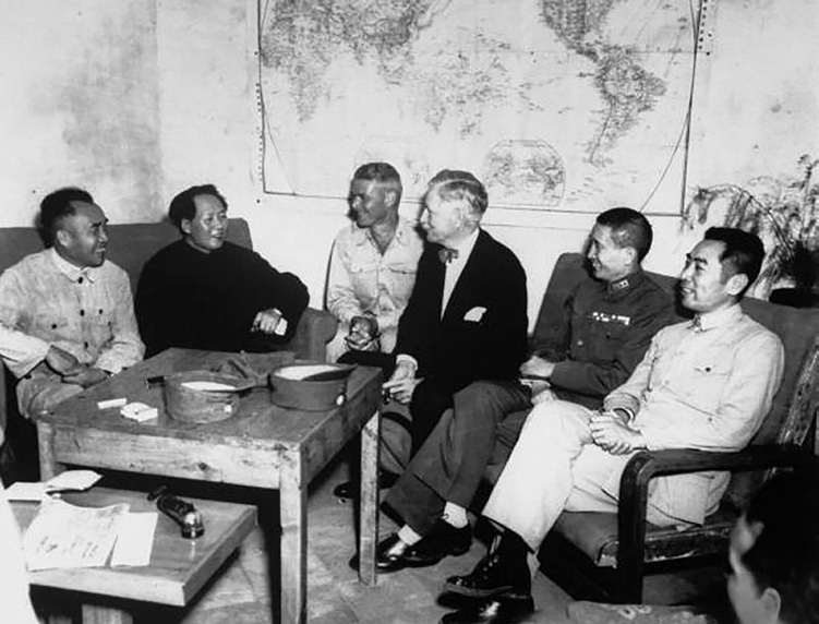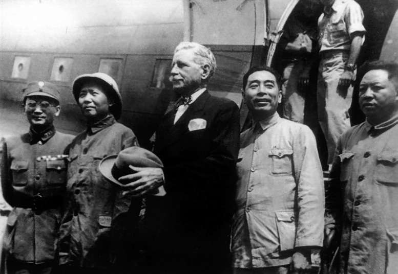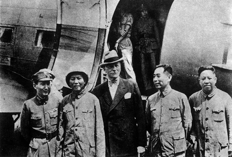 彼得·弗拉基米洛夫看到的景象是,高大的满头灰发的赫尔利(比毛要高出十厘米),穿一身考究的西服,系蝴蝶式领结,戴了一顶时髦的帽子。在他旁边的毛泽东,则穿了件又肥又大的深蓝色上衣,戴一顶软木遮阳帽。他在日记中记道:“毛泽东笑容可掬。但我清楚,这些天他心境如何。”