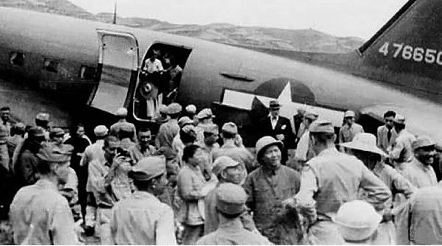 图6 1945年8月28日,即将前往重庆的毛泽东在延安机场(1)