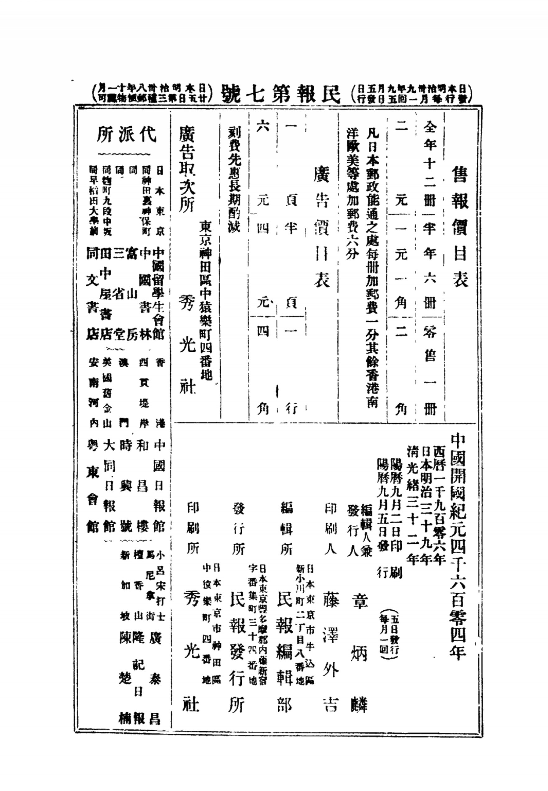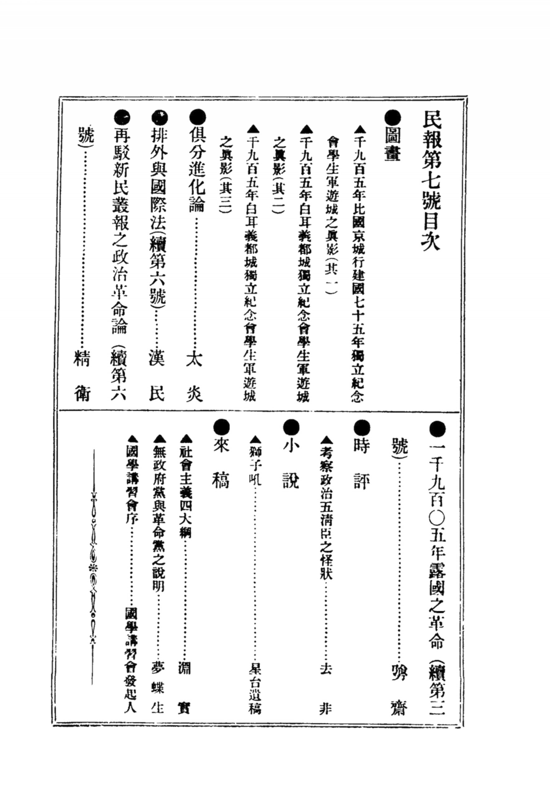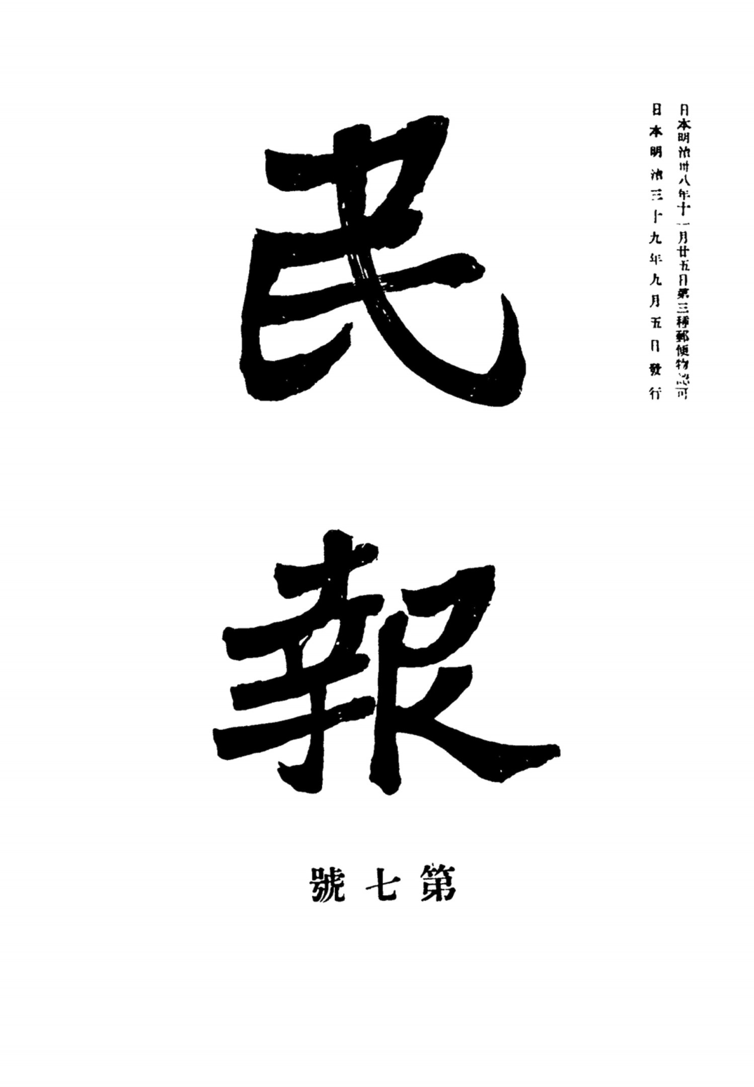 今以《民报》1906年9月5日第七号为底本予以整理。
