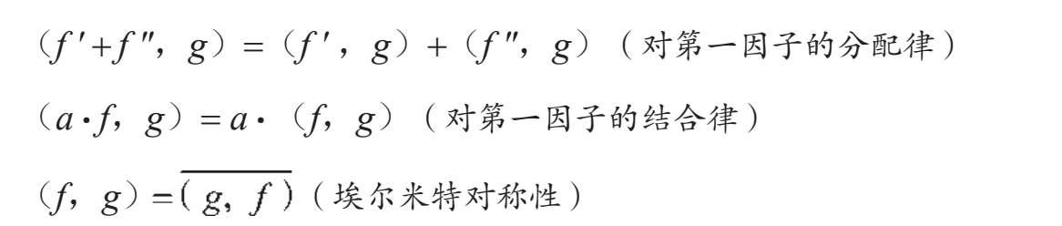 )。与前两种运算有所不同,这一运算将产生一个复数,而非希尔伯特空间中的一个元素。在