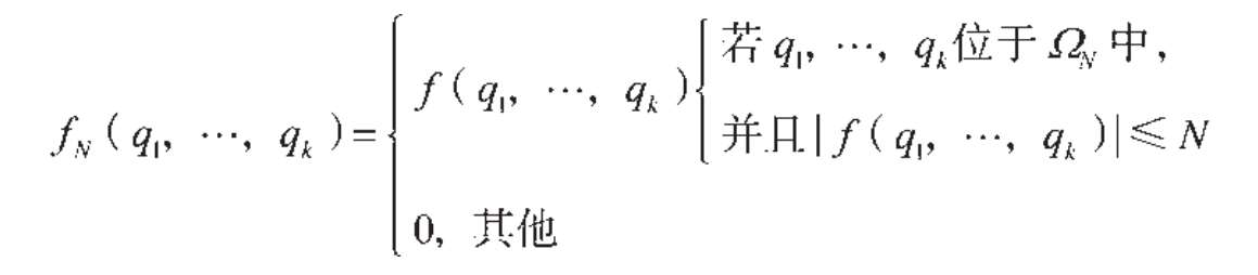 有限的所有函数 f ( q 1 ,…, q k )所构成的空间。我们现在允许所有的 q 1 ,…, q k 在-∞到 +∞之间变化。如果限制 q 1 ,…, q k 的变化范围 (例如,使 Ω 成为半个空间,或位于立方体的内部,或位于球体内部,或位于这些图形的外部,等等) ,即便选择使 Ω 成为曲面 (例如球体表面等) ,我们所得的推论仍然会有效,甚至在很大程度上连证明步骤都可以逐字保留。但是,为了不迷失在不必要的复杂性之中 (读者可以毫无困难地借助我们所给出的典型例证自行讨论) ,我们将其限制为刚才提到的最简单情况。下面我们将以此处理条件 A ~ E 。