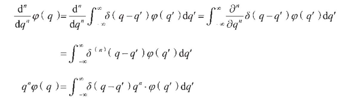 如果我们一旦接受了这个构想,就有可能把最多样化的微分算子表示为积分算子。前提是,除函数 δ ( q )以外,我们还引入其导数。则我们有
