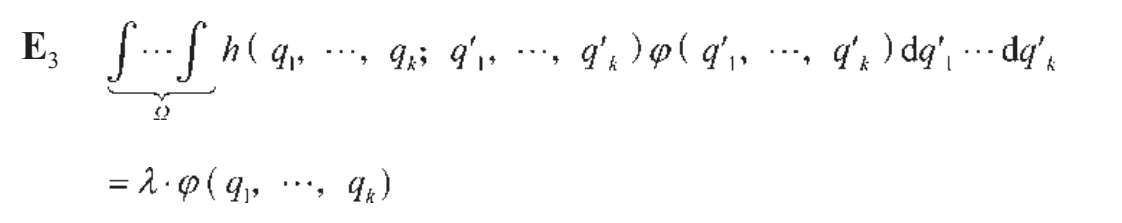 矩阵理论的基本问题在于,首先要找到矩阵 Q 1 ,…, Q k , P 1 ,…, P k ,以满足 1.2 节 (见第 7 页) 中的提到的交换法则;其次,这些矩阵的特定函数 H ( Q 1 ,…, Q k , P 1 ,…, P k )可化为对角矩阵。在玻恩和若当所发表的第一篇论文中,该问题被分为两个部分: