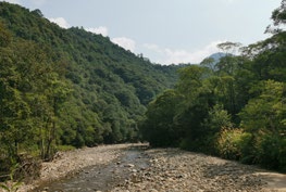 走了一段,发现有小路通往河边,我就好奇地下去看了看。如果有潮湿的泥土,在炎热天气中,应该是能看到蝶群的,观察及拍摄到凤蝶的机会更大。