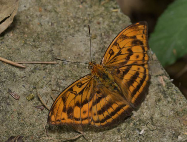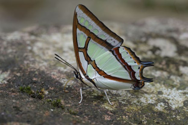 这是一只矛翠蛱蝶,分布于热带地区。经反复比对,我拍到的两只前翅都比较尖,同为雄性。