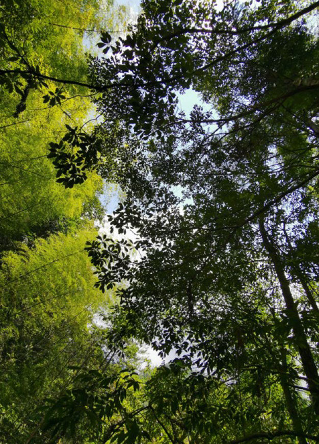 代表山民耕作区的竹林和代表原始森林的树冠在空中相处融洽