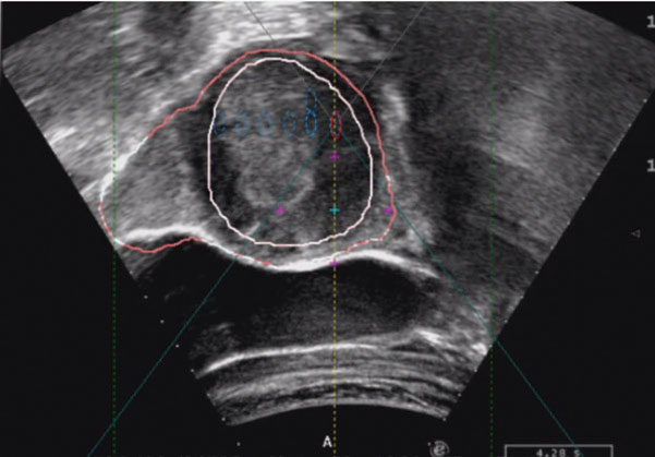 超声图像又称声像图。在HIFU治疗技术的超声监控方面,Haar最早用二维实时超声在离体猪肝上检测到了HIFU损伤病灶,认为可以利用超声作为HIFU治疗的监控工具。不过,在HIFU治疗的超声监控研究方面,国内做了大量工作。重庆医科大学在对靶组织的测温、凝固性坏死组织与组织病理及声像图变化的相互关系、HIFU辐照不同组织凝固性坏死的超声图像特点、超声图像的灰度值与组织凝固性坏死的关系、HIFU所致凝固性坏死的灰度判断标准、超声图像的散斑分析处理、MRI与超声图像融合、通过超声图像选择声通道的价值、超声图像实时疗效评价与剂量反馈及通过超声图像监控如何避免或减少并发症等方面,取得了突破性进展。