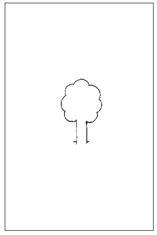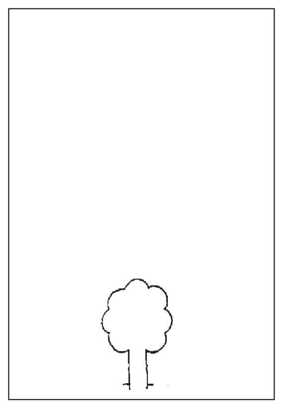 图 3.21 至图 3.23 表示的“画纸下方的小树”的 3 种位置,具有遭受了挫折的主观情感的共通点。这里环境的压力非常强,好像感觉到威胁了自身的存在。这里看出了深沉的压抑感、被害感和无法应对现实的状况。如前所述,笔者资料中的多数,都是健康的成人的树木画。但是在这里阐述的属于这 3 种类型的来访者,有着显著的精神混乱。虽然这样的树很少,但因为考虑到自杀的危险性,必须给予充分的注意。