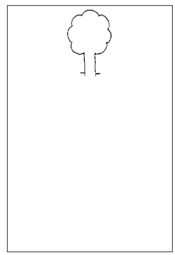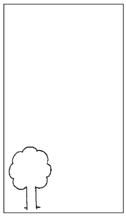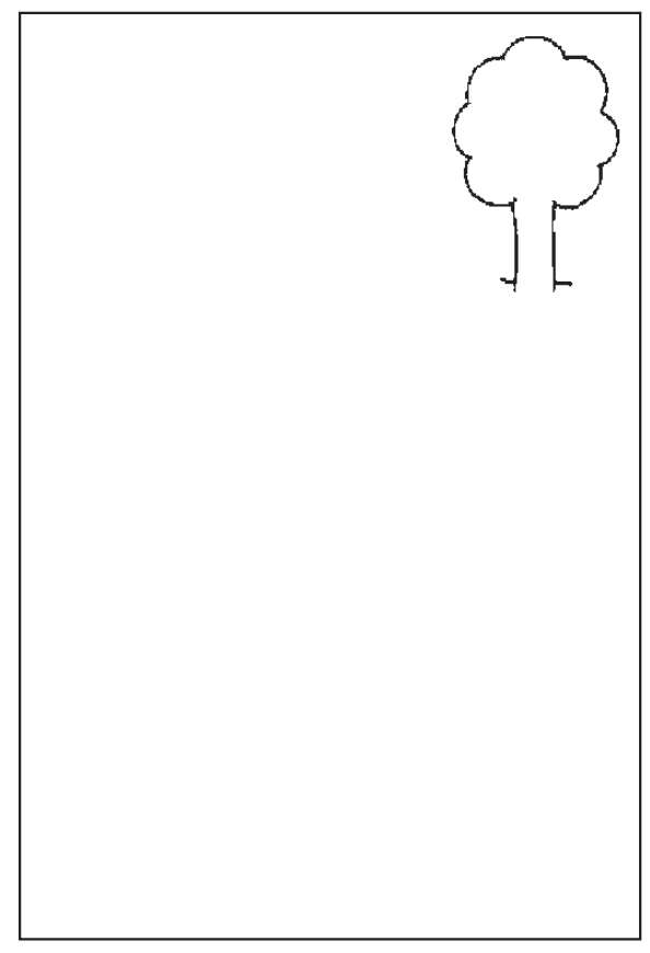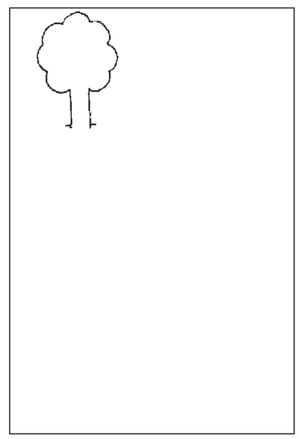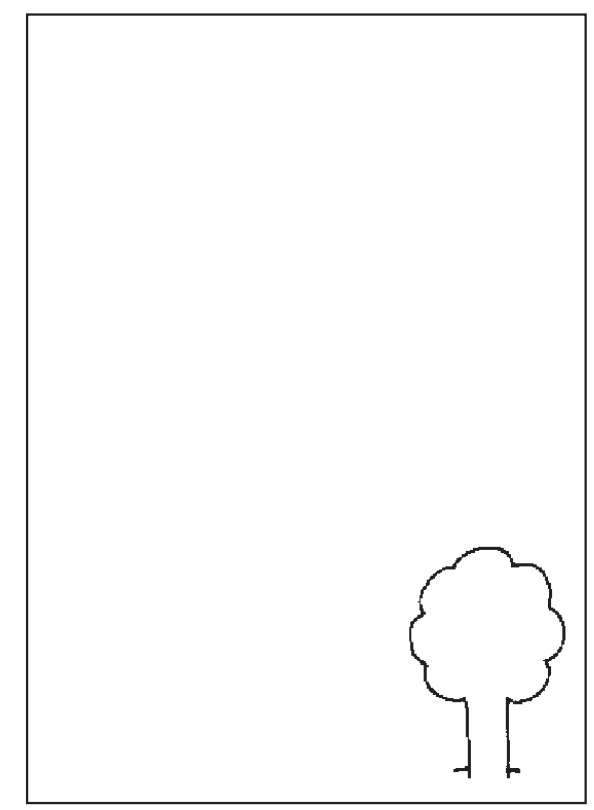 图 3.18 至图 3.20 是在画纸边缘处描画出的非常小的树。这 3 种位置表现出出于谋求发展和适应社会的强烈冲动,而努力克服自身孤立和无意义(通常都与不幸的生育经历相关)的情感。这 3 种位置都表示了自我能量的强烈集中,比如这样的来访者常常一天可以工作16 个小时。客观地看,即使取得很好的成绩,他们也无法感到满足,也不能确信自己自身的价值。