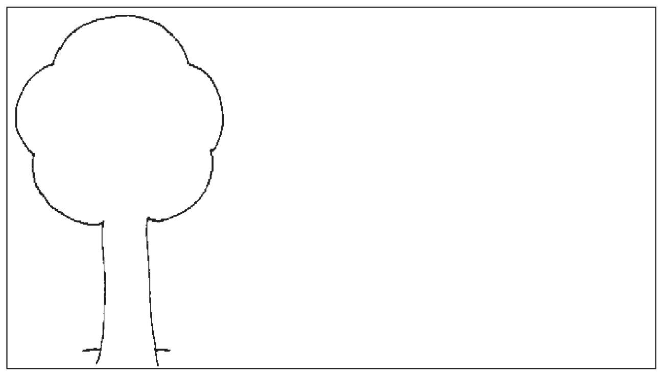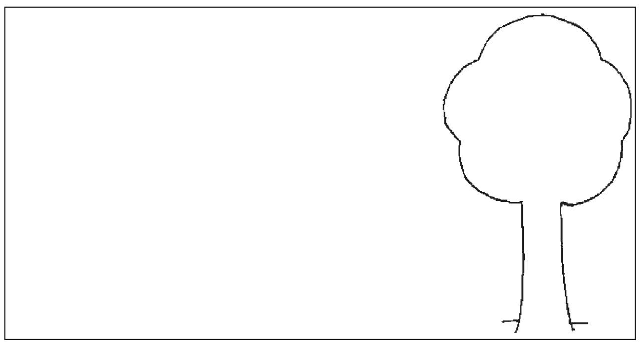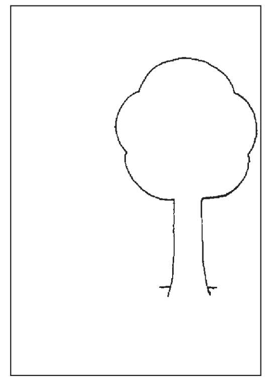 与图 3.9 同样,此图中树的位置表示母亲的影响对个体是有强烈支配性的。但是在这种情况下,个体为了克服母亲的支配,实现创造性的改变,而进行着精神上的努力。如果是实际具有才能的人,会具有在美术音乐等方面获得成功的健全的潜在能力;若与此相反,则表现出自己能够在艺术表现上大获成功的空想,表示出消极和被动的逃避。