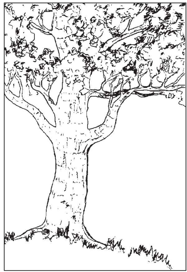实例 3 (图 3.27)就是溢出画纸三处边缘的树。这是一名 30 岁的男性描画的树木,从某个意义来看可以说他是“永远的青年”。他是个多才的人,具有独创性的同时,也有病态的自我中心和夸大妄想的一面。
