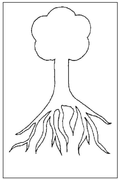 画出这种树的来访者,确实在现实中“有根”。如果其他的指标是肯定的,那么基本上还是比较健康的,只是有些过于关心本能和性的问题,或者只关注具体问题。如果从别的指标中看出其否定意义的话,可以理解成被本能的冲动(可能是被歪曲的、倒错的性冲动)过度支配,或者被无意识完全压倒了。当根部的强调太明显时,感情反映通常比较肤浅,理性的思维能力也被局限住了,并且向理想或者将来的目标前进的能力也通常得不到很好的发展。针对此处,笔者建议可以和图 6.71 的解释进行一下比较。