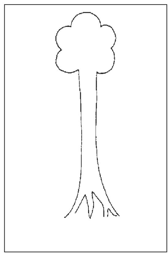 正如科赫所说,几乎所有六七岁以前的儿童都似乎过分强调树干。如果说树干表现了情绪领域,那么幼小的儿童,由于他们的性能力和理性技能都还没有得到充分的发展,或者说孩子们从本质上是很情绪性的,所以画出了这样的树。但是也不能因此就赞成科赫所说的,如果成年人过分强调树干,就是精神迟滞的一个标志。因为在实际的心理咨询临床中,我们可以看到很多健康的成年人都画出了这样的树木。根据笔者的经验,这样的树解释为情绪的不成熟更为准确,并局限于树干较长而同时树冠较小的时候。若上部是较小而封闭的树冠,中间是夸张的树干的话,通常可以解释为欠缺自我控制能力,容易被情绪所左右。如果是男性,会表现为粗鲁蛮横而性急;而女性则容易对一些微不足道的小事兴奋,充满孩子气并且不善于控制自己。这和迟滞完全不同,不如说是知识水平偏低、或者精神发展不够成熟。