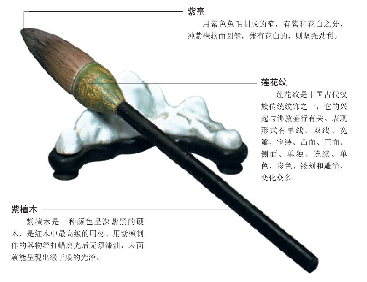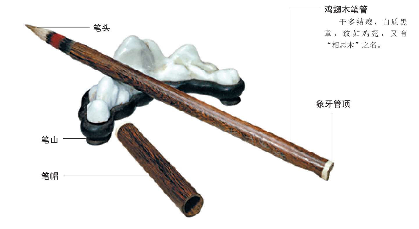 毛笔主要由笔管和笔头两大部分构成,因其制作材料不同,毛笔在用途及性能上也有很大差别。