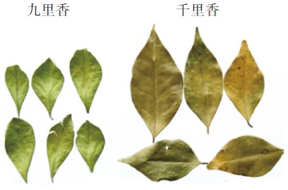 ◆来源 本品为芸香科植物九里香(Murraya erotica L.)和千里香[M. paniculata(L.) Jack]的干燥叶和带叶嫩枝。
