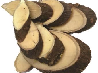 ◆药材性状 本品根呈弯曲的长圆柱形,常有分枝,直径0.5~6cm;表面黄棕色或暗棕色,有略突起的支根痕及不规则的纵沟纹及少数横裂纹,有的可见横长皮孔状突起;质硬而韧,断面皮部类白色,易剥离,木部淡黄色,具同心性环纹。根皮呈扭曲的条带状,厚1.5~4mm,强纤维性,纤维绒毛状。气微,味微苦、甘,嚼后有持久的灼热辛辣不适感。