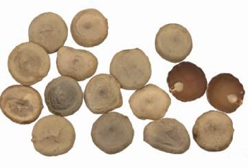制马钱子 本品形如马钱子,两面均膨胀鼓起,边缘较厚。表面棕褐色或深棕色,质坚脆,平行剖面可见棕褐色或深棕色的胚乳。微有香气,味极苦。
