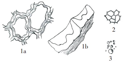1.种皮细胞(a.正面观b.侧面观) 2.胚乳细胞 3.油滴