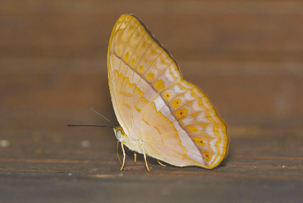 看它似乎不急着离开,我干脆一屁股坐在了木板上,看了好一阵才举起相机。记忆中,不曾有过与这种蝴蝶安静相处的时刻,不管在西双版纳,还是海南岛,我见到的幸运辘蛱蝶个体都活跃极了。
