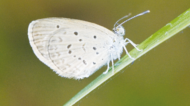 终于,一只,两只……更多的小翅膀被我找到。草地是斜坡形的,坡顶是一排灌木,而这里的草尖上,停着很多小灰蝶。