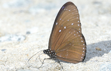 我观察了一阵,都是常见的,玉斑凤蝶、宽带凤蝶为主,就转身离开。在停车场的阴影里,先后发现了蒙链荫眼蝶和鹤顶粉蝶,后者在积水里畅饮正欢,远不像平时那样敏感。