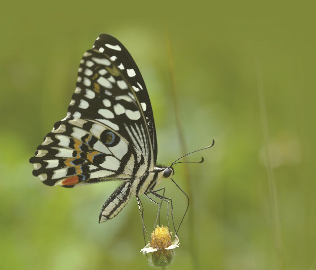 无尾突的达摩凤蝶,是著名的观赏蝴蝶,翅的正面和反面色差很大,反面尤其漂亮——前翅黄色黑色斑相间,后翅还多一组棕黄或棕红色的斑纹。因此,它的形象经常出现在世界各国的艺术品和邮票中。