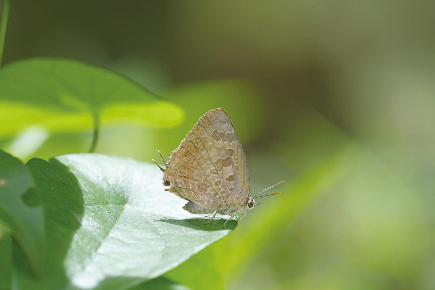 受限于自己的水平,现场我并没看出来,其实并不是酢浆灰蝶,而是毛眼灰蝶。它们和前者虽然形近,但靠近翅膀外缘的斑纹很浅,像打印机打印到某处时没墨水的样子。