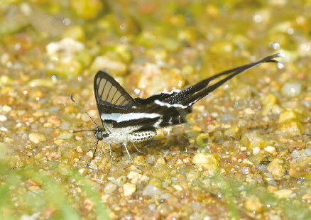 远远看过去,泼过水的地面已经半干,有一些小型蝴蝶弄蝶灰蝶之类。待到稍近,我不禁大喜过望——一只完好的燕凤蝶在那里快乐地抖动着尾巴,像骄傲的小公主。