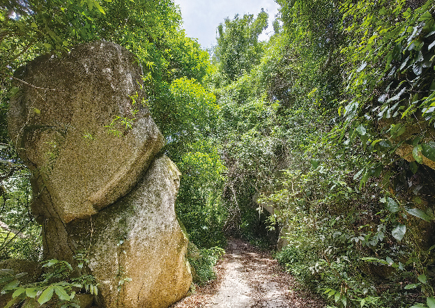 接连看到两种尖粉蝶,还是挺神奇的,这条步道比刚才走过的栈道好太多了。就算比风景,也各有所长,栈道移步换景,幽谷山峰,视野开阔,但步道的小景也能与之匹敌,常有巨石耸立,树根裸露,令人仿佛置身于巨大的盆景之中。