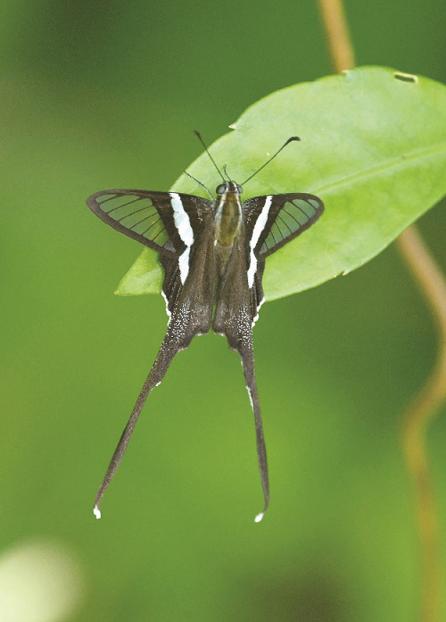 他这么一说,我瞬间想到前几天在网上搜索霸王岭信息,看到《海南日报》发表了一组霸王岭的蝶群图,其中有一只穹翠蛱蝶(短尾型)让我相当眼馋,赶紧问道:“是不是前几天网上那组蝶群照的地方?”