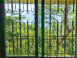 霸王岭上某山庄的窗景,铁窗也锁不住的热带雨林