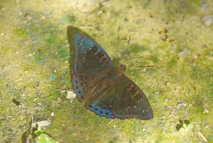 幸运辘蛱蝶保持着它们惯有的神经质,和地面接触不超过5秒,但又并不远离。它们的活动范围大,棚下只是偶然来一下。