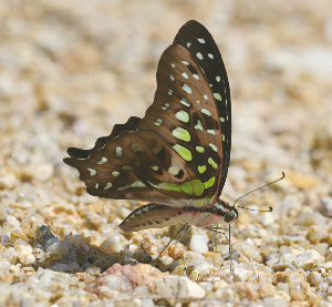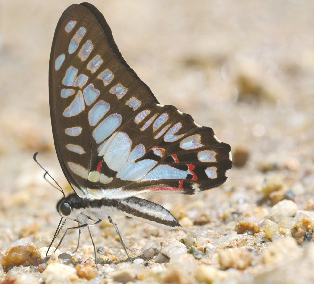 和昨天下午不同的是,浅滩上到处都是吃水的蝴蝶,绿带燕凤蝶就有三只。