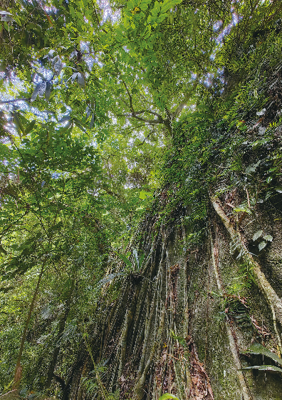 步道林密闷热,光线阴暗,寻蝶困难,但要说风景那就太值得了。昨天在雅加景区,见到巨石与根的组合,很震撼,但和这边比起来,还只能算小巫见大巫。这条线路的景观,堪称巨石与根的奇异博物馆,走南闯北的我也毕生未见——有时树根如瀑倾斜而下,有时如筐形包裹石头,有时又如伞形放肆地放开、形成和树冠几乎对称的倒置的树形……巨石和根,在这里变成两个被选中的单词,上苍在这里造句,从机巧玲珑到气势磅礴,变幻无穷,令人叹为观止。