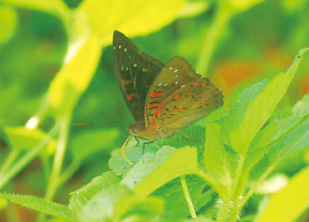 还是棚下,新来了一个明星蝶红斑翠蛱蝶,是个头小小的雄性,小得不像翠蛱蝶了。雌性更大,反面更为惊艳,不过,我在野外只见过一只残的。