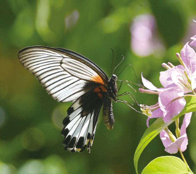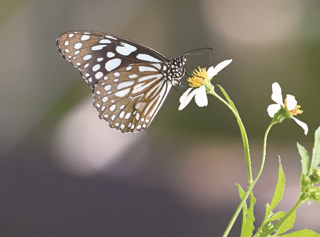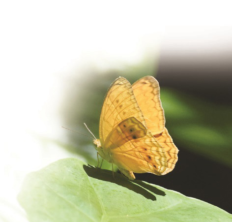 这样的较劲儿,看上去时间是在毫无意义地消耗,我应该略有焦虑,实际上,一点也没有。自从若干年前,我在海南岛的另一个植物园兴隆热带植物园第一次见到纤粉蝶时,就没来由地喜欢上了小得令人惊叹的它。逆光时能隐隐见到正面的圆黑斑——像带着山丘和深谷的半边月亮。当它贴着地面低飞,就像在无休无止地展示惊人的空中技巧,让我这个观察者啧啧赞叹。