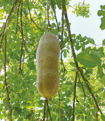 这是原产自非洲的吊瓜树啊,我在广州的华南植物园见过,看了一会儿吊瓜,我又低头找吊瓜花。吊瓜树的花比果实奇特,夜开晨落,要拍到它须清晨去树边才有机会。