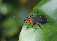 休息的时候,就在身边的灌木上,我发现有一只蝽有点意思,它的鞘翅质感有点特别,绒绒的。看上去既熟悉又陌生。终于想起来了,昆虫学家张巍巍有一次去盈江,拍到过它,当时我还挺羡慕,名字叫绒红蝽。红蝽科种类一直是我感兴趣的,有些相当漂亮。